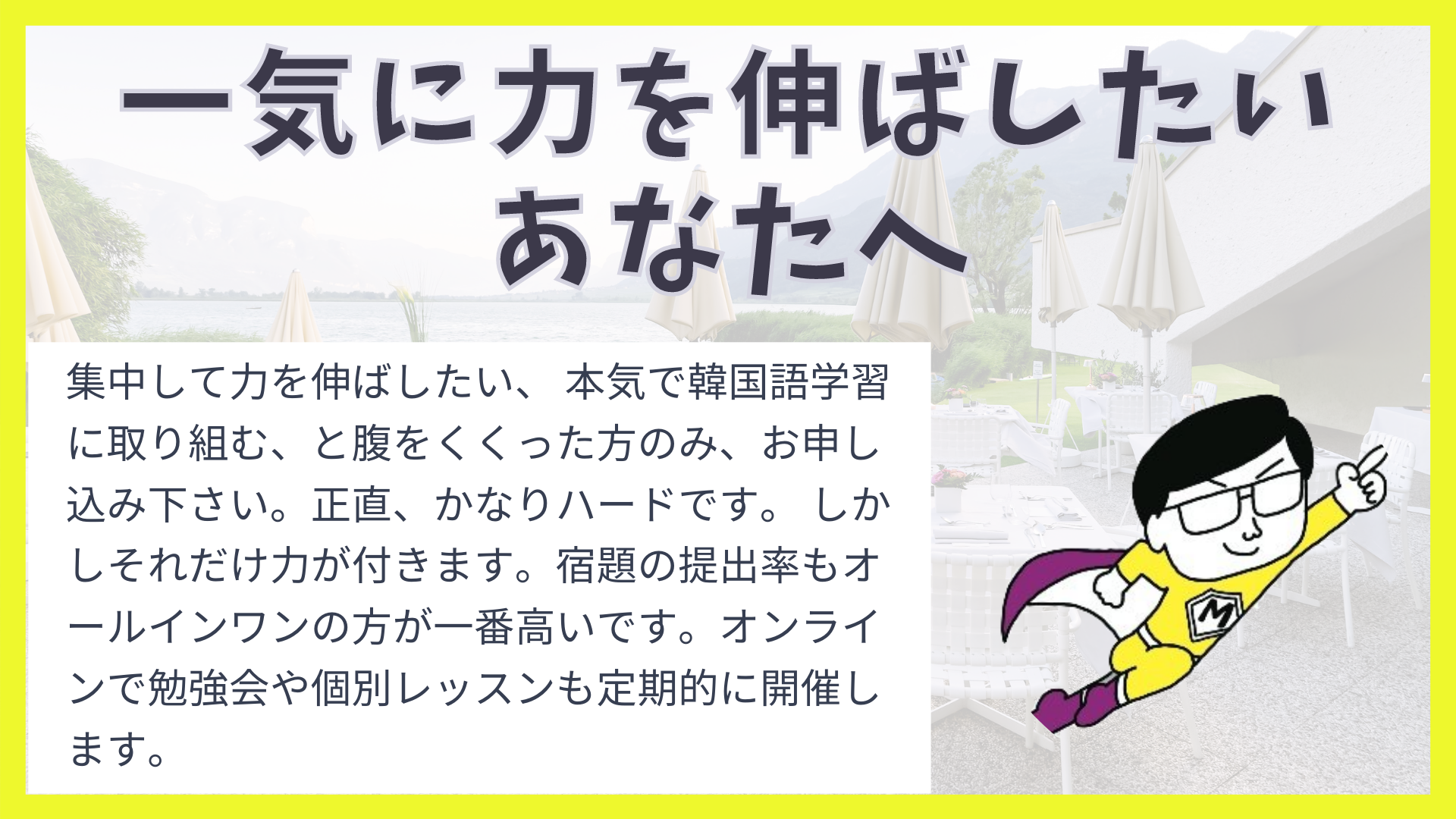 集中して力を伸ばしたい、 本気で韓国語学習に取り組む、